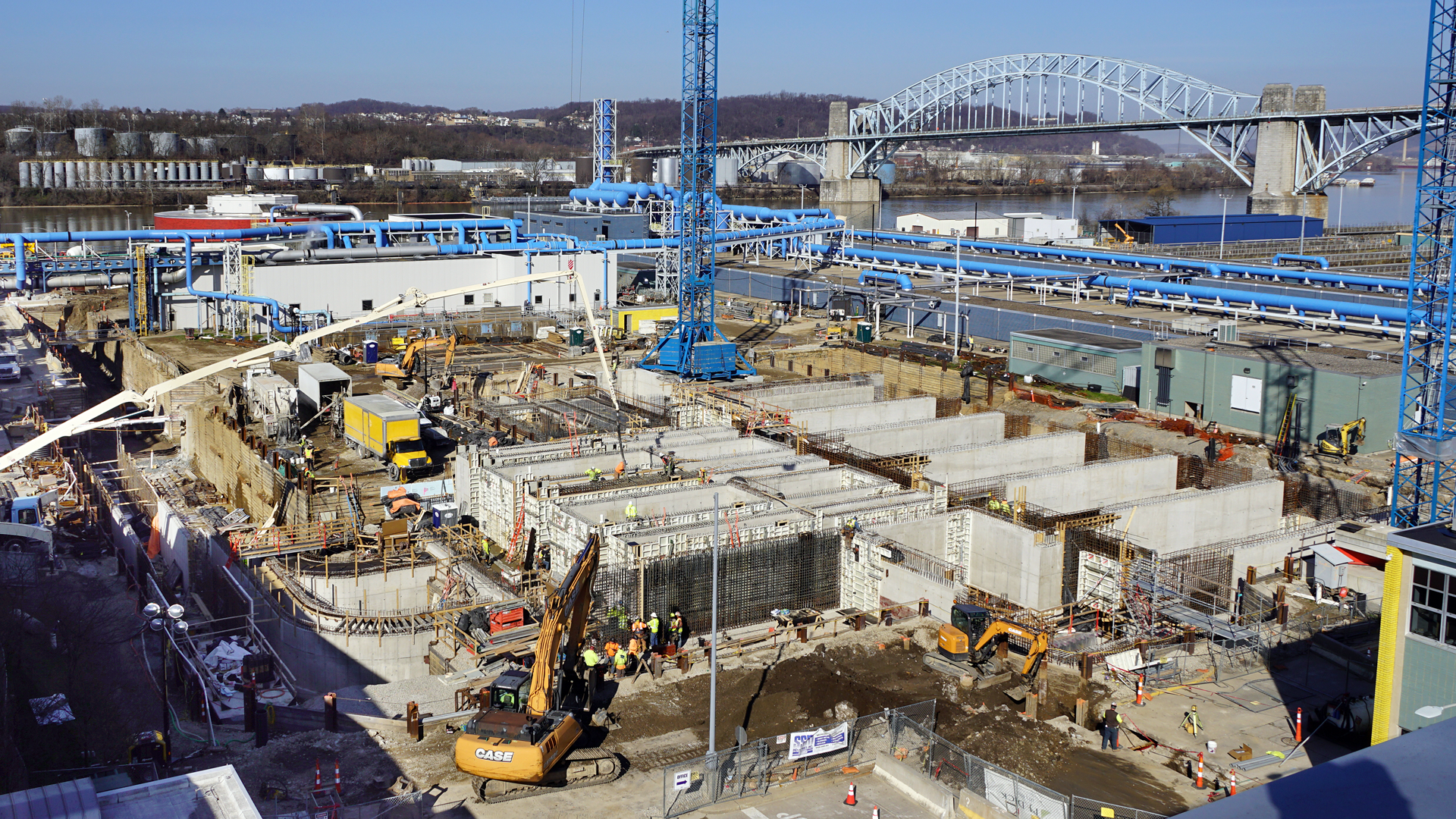 The Clean Water Plan will increase ALCOSAN’s wastewater treatment capacity from 250 million gallons per day (mgd) to 600 mgd. Construction of a new East Headworks facility to accommodate additional wastewater is necessary. This facility is where wastewater receives the initial treatment process, including grit removal and screenings. The new East Headworks facility will adjust for additional flows by housing six grit tanks, six bar screens and a grit truck unloading station.